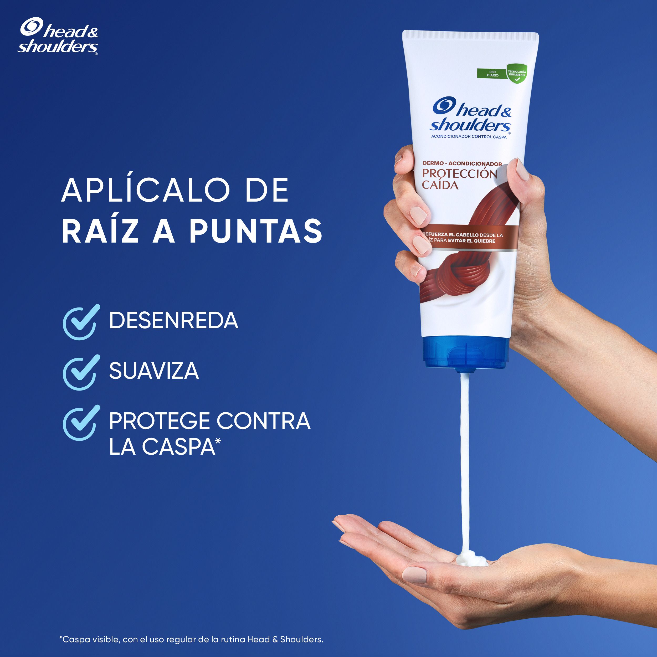 DERMO ACONDICIONADOR PARA CASPA PROTECCIÓN CAÍDA. ¿Sabías que al usar un acondicionador regular puedes enjuagar hasta el 70% de los agentes control caspa? El dermo acondicionador Protección Caída potencia el efecto control caspa* de tu shampoo Head & Shoulders. ¡Si te liberas de la caspa, evitas la caída**!.