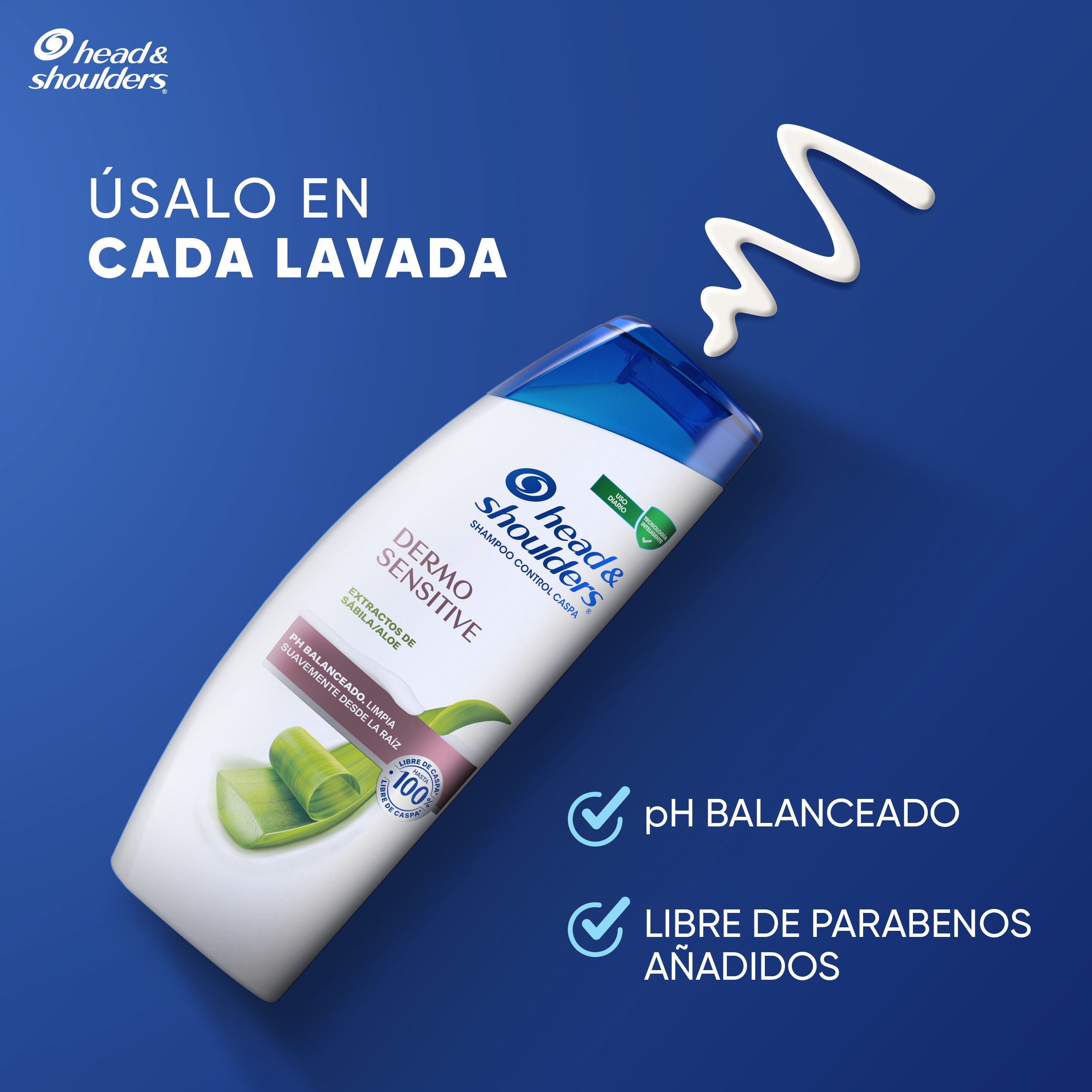 El Shampoo Dermo Sensitive de Head and Shoulders tiene en su fórmula extracto de Sábila y Aloe que brindan hidratación intensa mientras ayudan a liberar a tu cuero cabelludo de la caspa*. La fórmula, suave, de Head and Shoulders con tecnología inteligente, que actúa donde es necesario, protege contra la caspa*, brinda un cuidado especial al cuero cabelludo, manteniendo un cabello suave y hermoso de raíz a puntas. Consigue alivio de la irritación** en el cuero cabelludo, su fórmula tiene pH balanceado y además es libre de colorantes y parabenos añadidos, para una limpieza delicada.